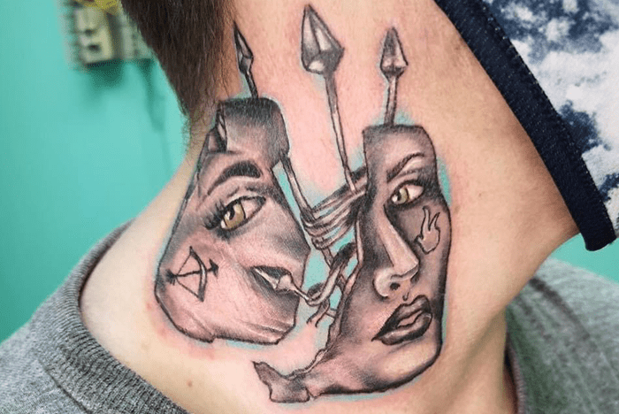 Survivor ’97 is a 47-year-old woman with the “Sagittarius broken face” tattooed on her neck. She chose the location of the neck so that she and others can see it. She got this tattoo upon retiring from the military after 24 years and 80 days of service. She shares that she did not know how she would adjust to civilian life after service and suffering from PTSD, but a friend told her that there is life after service. The tattoo signifies the brokenness she feels from serving her country, but also the ability to heal with the help of friends and family. “It means I am a survivor.” She calls it her tattoo therapy, as looking at it reminds her that she can be put back together. “Every time I look in the mirror and I am having those really shitty days, and I don’t want to be around anymore, I can see the tattoo and know that there is still meaning to life.”